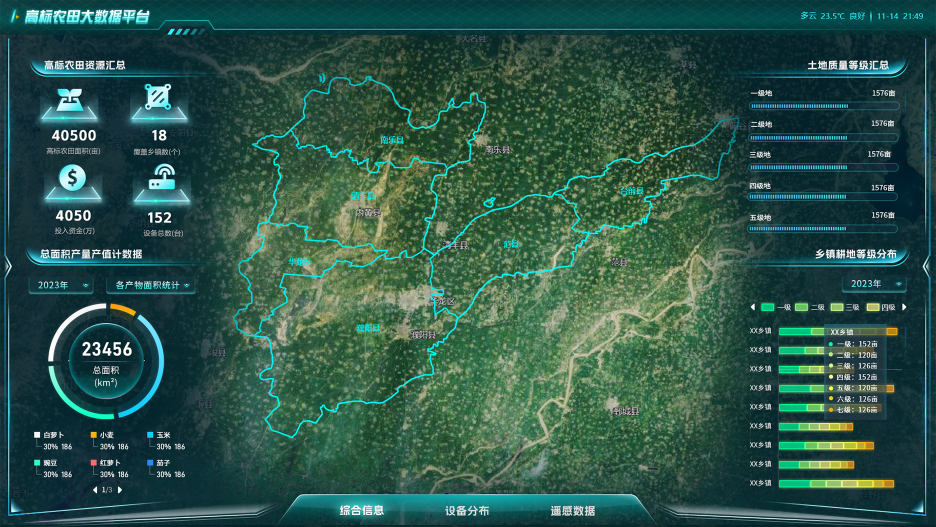 构建多系统融合的高标准农田信息化管理平台,平台通过农田基础地理信息采集、农事管理、智能灌溉等 9 大系统协同,结合物联网设备(如墒情传感器、智能控制设备),让农田管理从 “凭经验” 转向 “靠数据”。