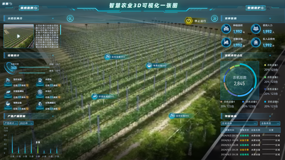 管理者通过“一张图” 大屏实时掌握 1000 + 地块长势、病虫害情况。